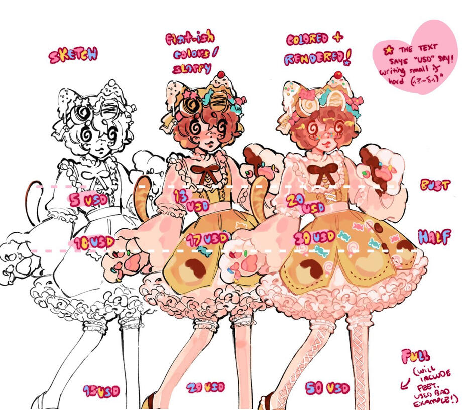 the lollipop will take you to my instagram, the flan will take you to my twit, and the elephant will take you to my ko-fi if you want a cute little sketch! if you'd like more then redirect urself to my commission page |